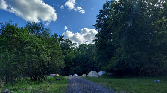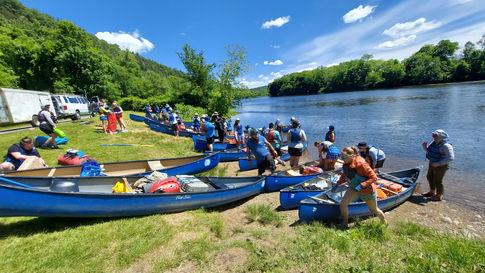 Emerge Year 4 fellows came together for a camping and river trip on the Lenape Sippu (Delaware River) bordering NJ and PA. Fellows traveled north of Philadelphia to a campground near the Delaware River, where they spent 3 days and 2 nights, May 30-Jun 1, 2024, camping in tents and canoeing on the river. After the first night of team bonding and camp at Cranberry Run Campground, fellows spent the following day canoeing to Worthington State Forest, where they engaged in meaningful reflection while setting up for the second night of camp.